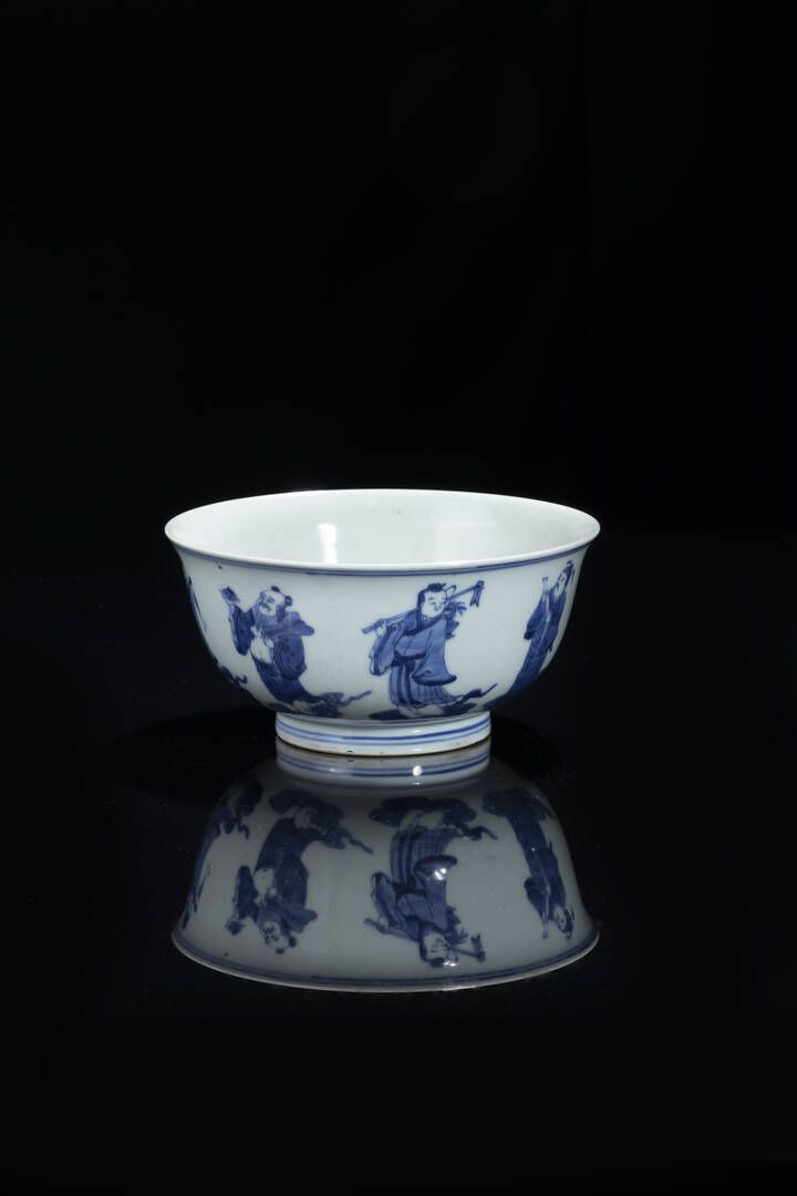 Ciotola in porcellana bianco e blu decorata con personaggi Cina dinastia Qing [..]