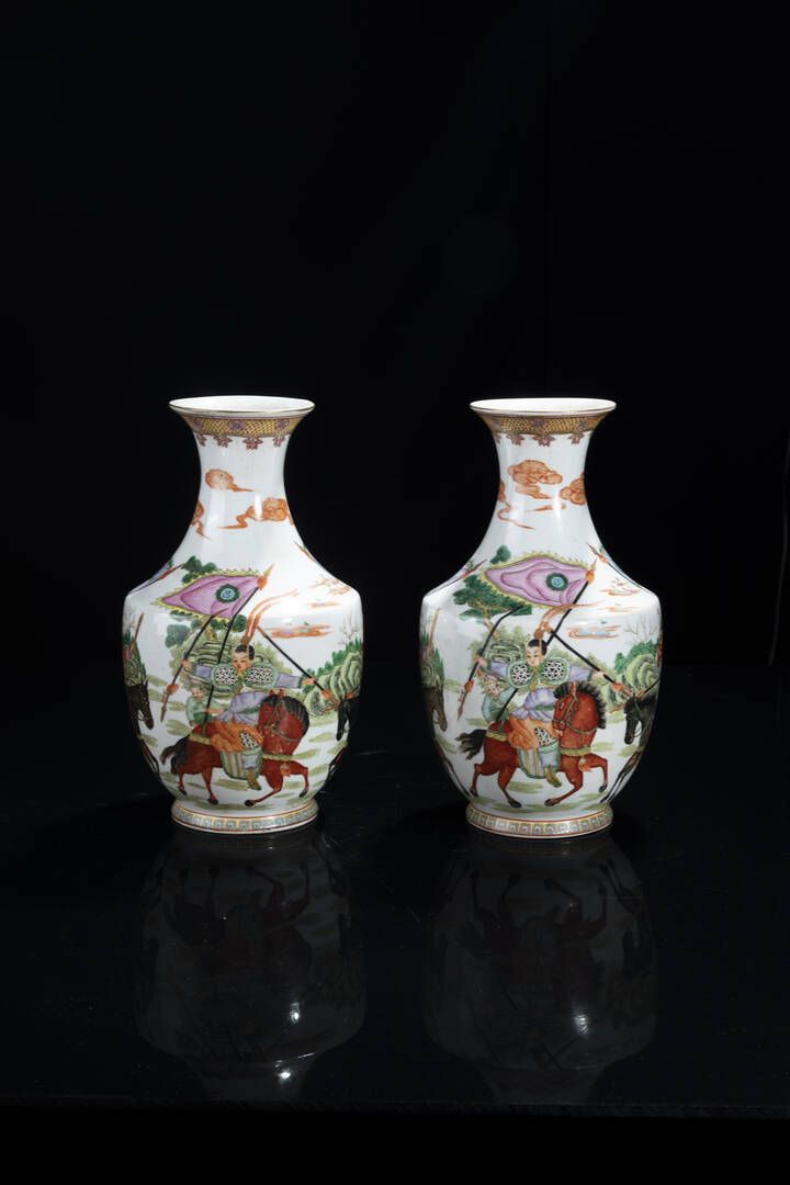 Coppia di vasi in porcellana con decori di battaglia Cina Repubblica XX sec H [..]