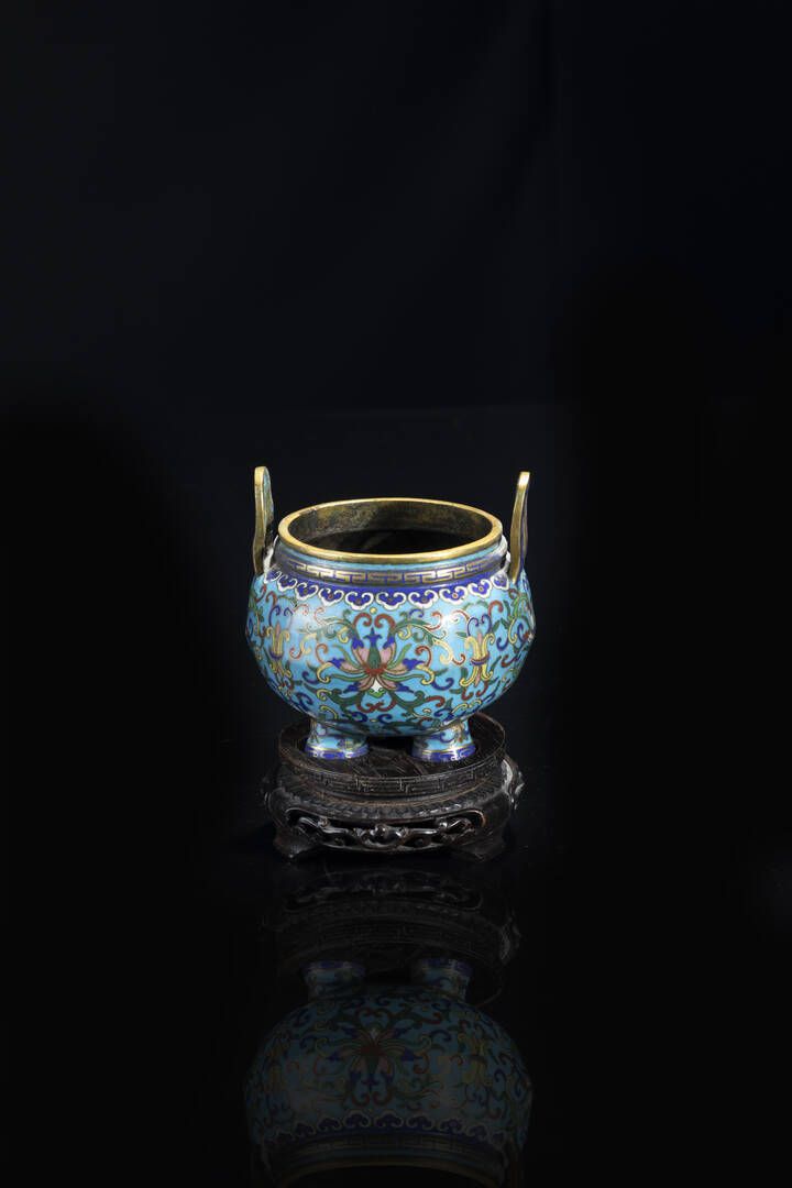 Incensiere in cloisonné con decori floreali Cina dinastia Qing XVIII sec H cm 9 5 Diam cm 9 5