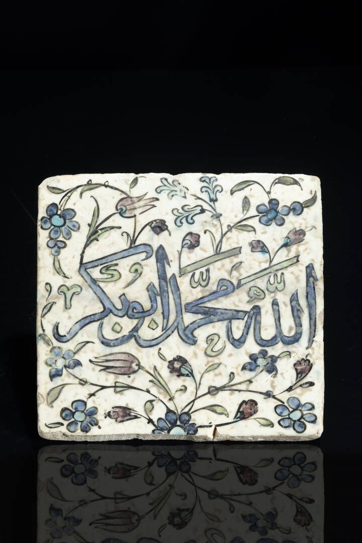 Piastrella islamica con Sura del Corano Turchia inizi XX sec H cm 25x25
