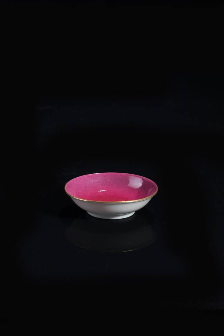 Piattino in porcellana monocroma sui toni del rosa Cina Repubblica XX sec H cm 3 Diam cm 10