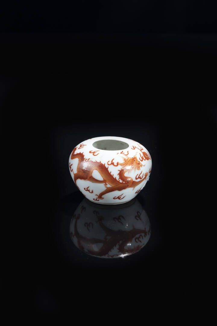 Piccolo vasetto in porcellana decorata con draghi rossi Cina dinastia Qing XIX sec epoca Guangxu (1875-1908) H cm 4 5x7