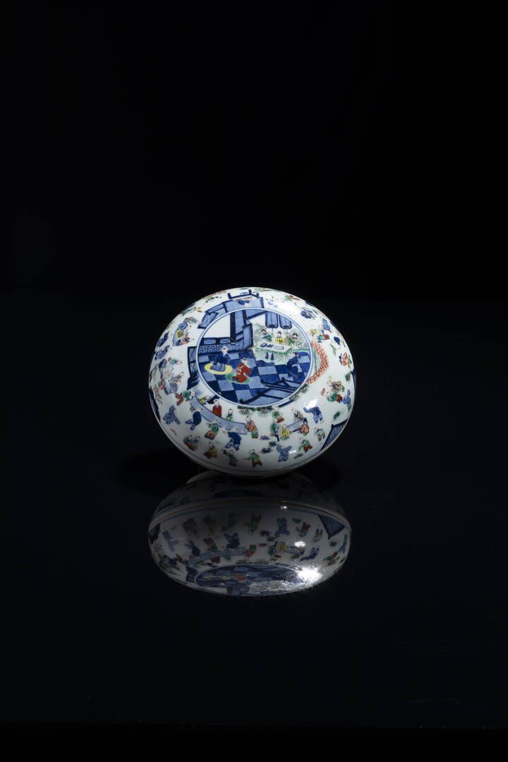 Scatola in porcellana Wucai decorata con scene di corte e personaggi Cina dinastia [..]