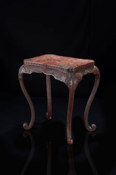 Tavolino in lacca decorato con fiori e farfalle Cina dinastia Qing XIX sec H cm 37x35