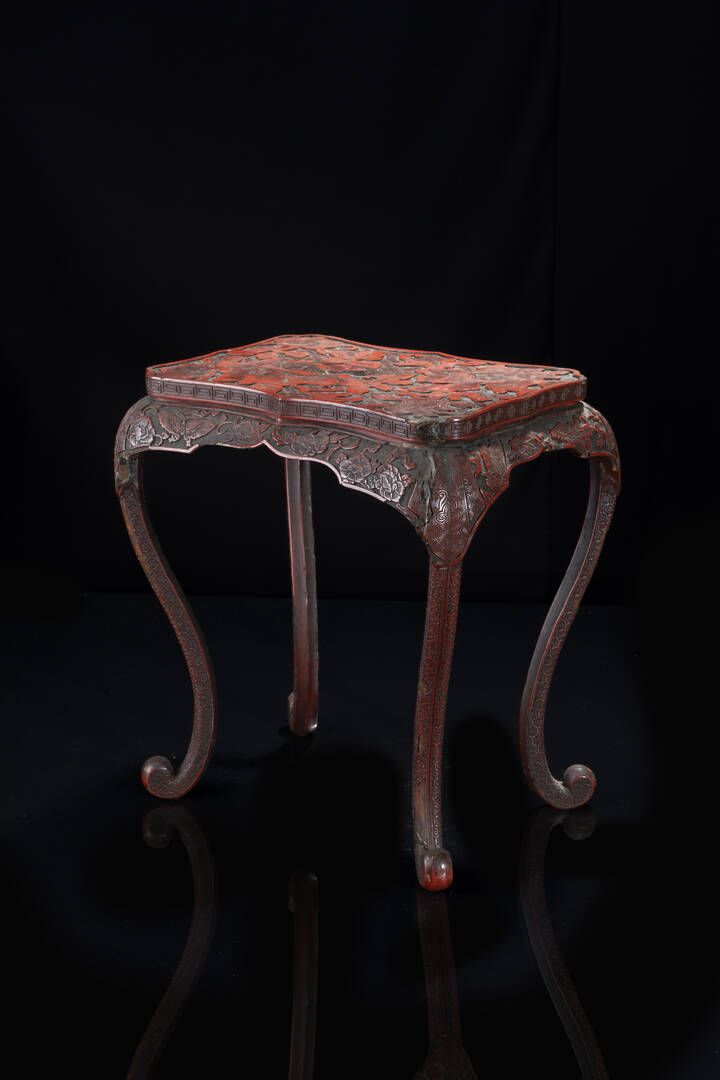Tavolino in lacca decorato con fiori e farfalle Cina dinastia Qing XIX sec H [..]