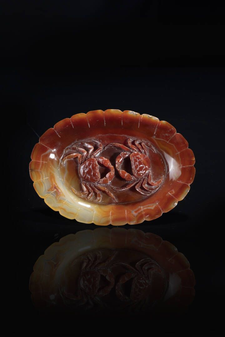 Vassoio in agata con intarsi di granchi Cina Repubblica XX sec H cm 25x18