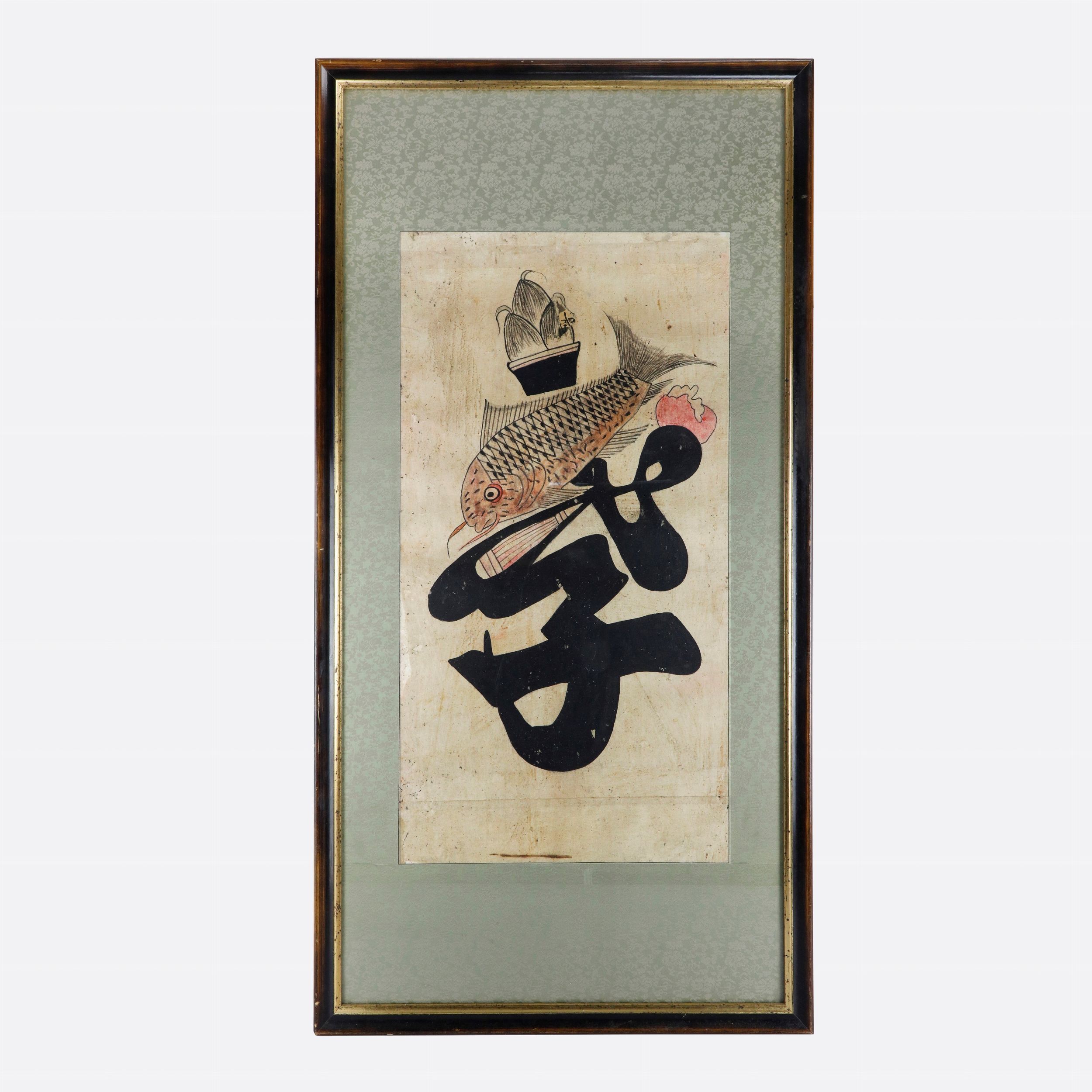 Carpa con ideogramma, disegno ad inchiostri su carta