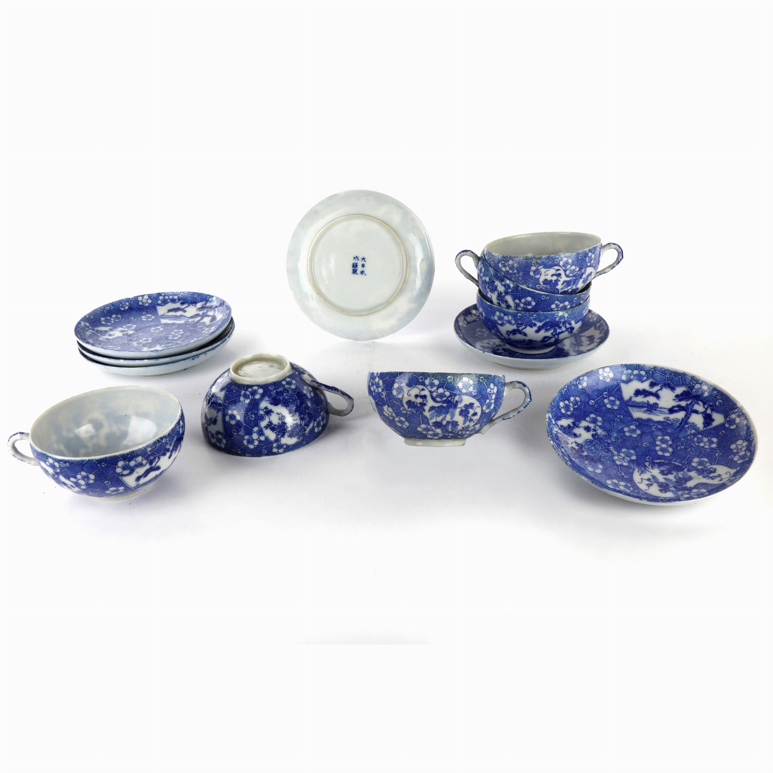 Giappone inizi XX secolo in porcellana bianca a decoro floreale bleu. Piatto con mancanza