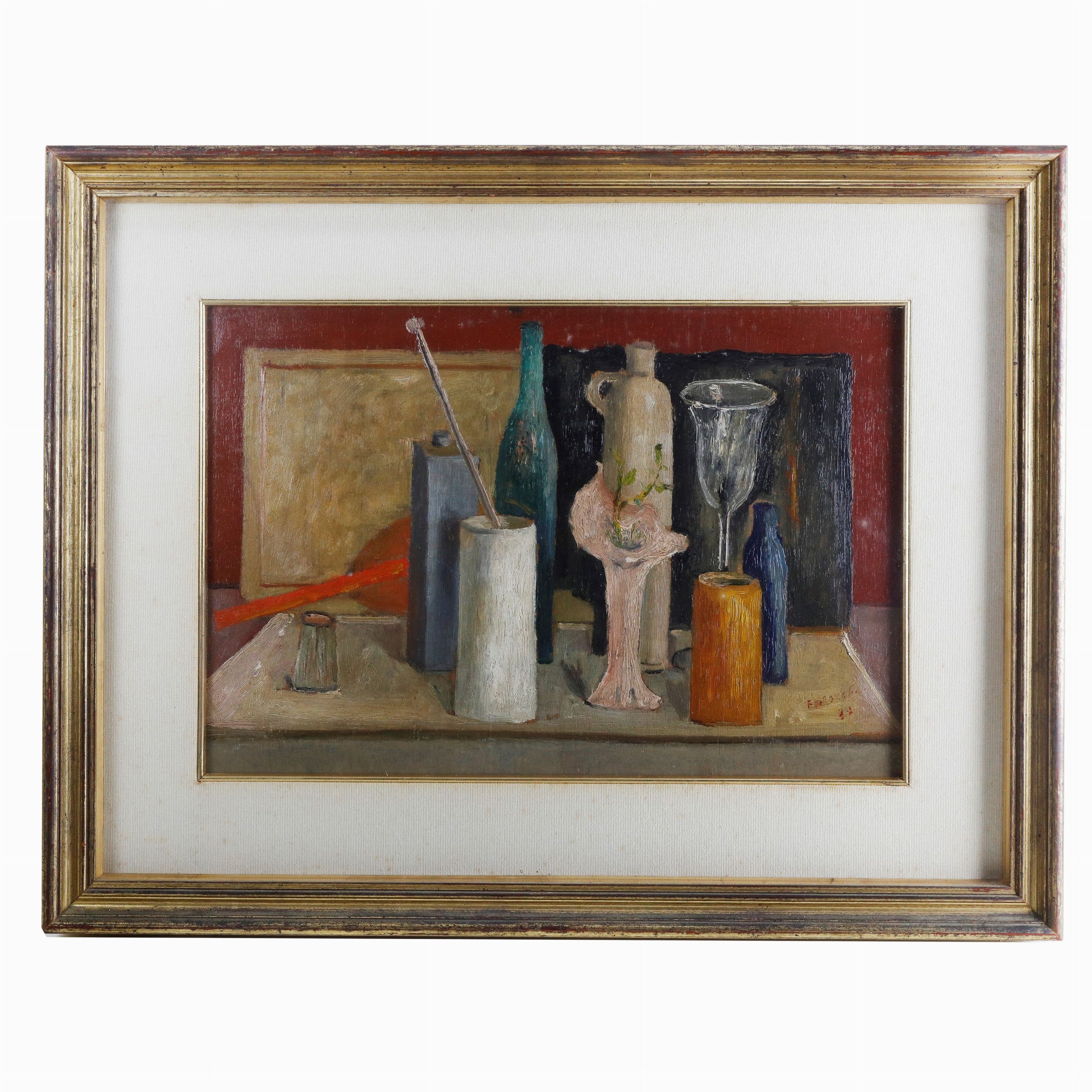 Natura morta con bottiglie e bicchieri