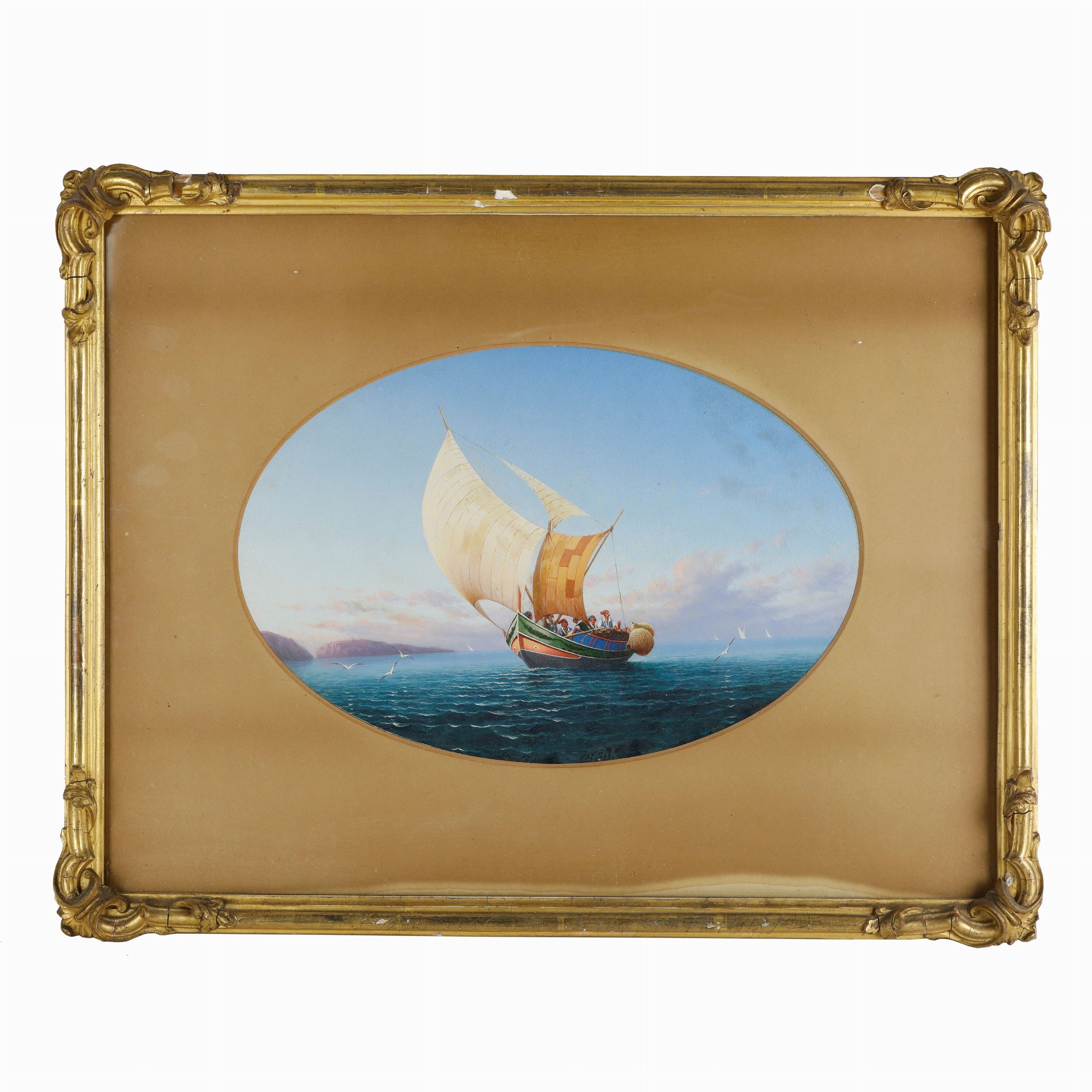 1880 ad assetto ovale, firmato e datata entro cornice dorata
