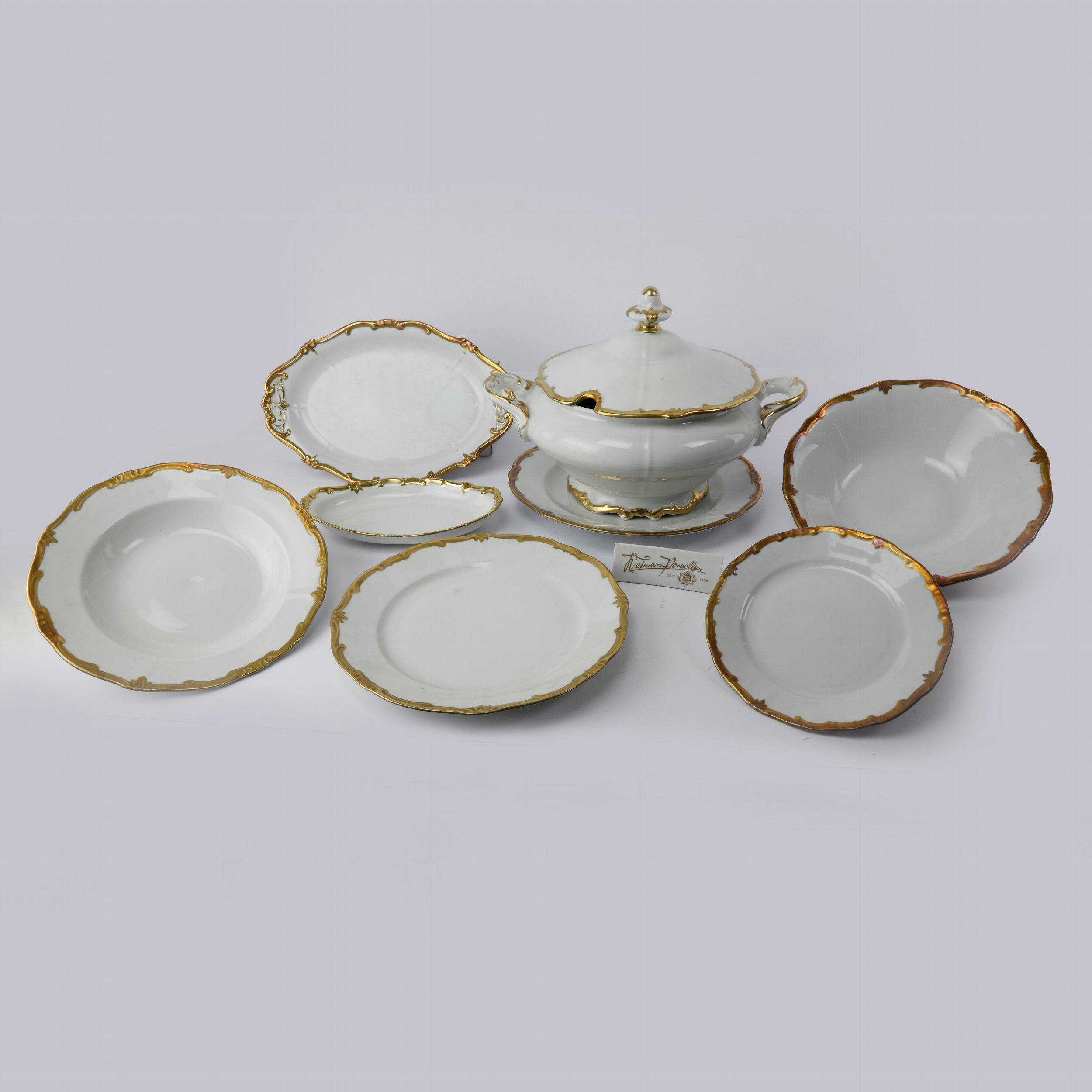 anni '70 composto da: 12 scodelle fonde, 24 piatti da coltello, 12 piatti da dessert, 1 zuppiera ,1 insalatiera e 3 piatti da servizio di diversa grandezza, pz.53. Manifattura di Weimar Germania est