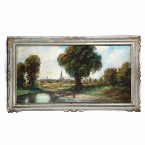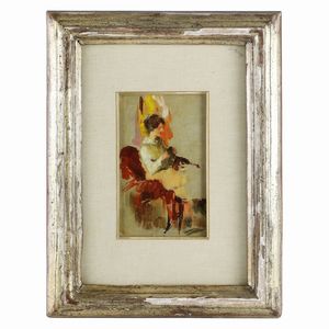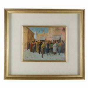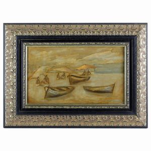 dipinto ad olio su tavola, 15,5 x 27 cm seconda metà XX secolo firmato al fronte in basso a destra in cornice