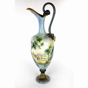 20 x 30 x 20 cm , 29,5 x 23,5 x 4 cm fine XIX secolo in pasta bianca con decoro a scene della tradizione locale [..]