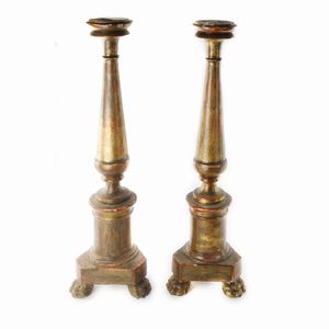 75 x 20 cm prima metà XIX secolo corpo a balaustro con base triangolare e piede d'appoggio ferini, dorature  [..]