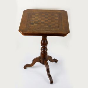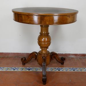 80 x 78 cm seconda metà XIX secolo a tre gambe d'appoggio a virgola, corpo a balaustro con piano circolare su [..]