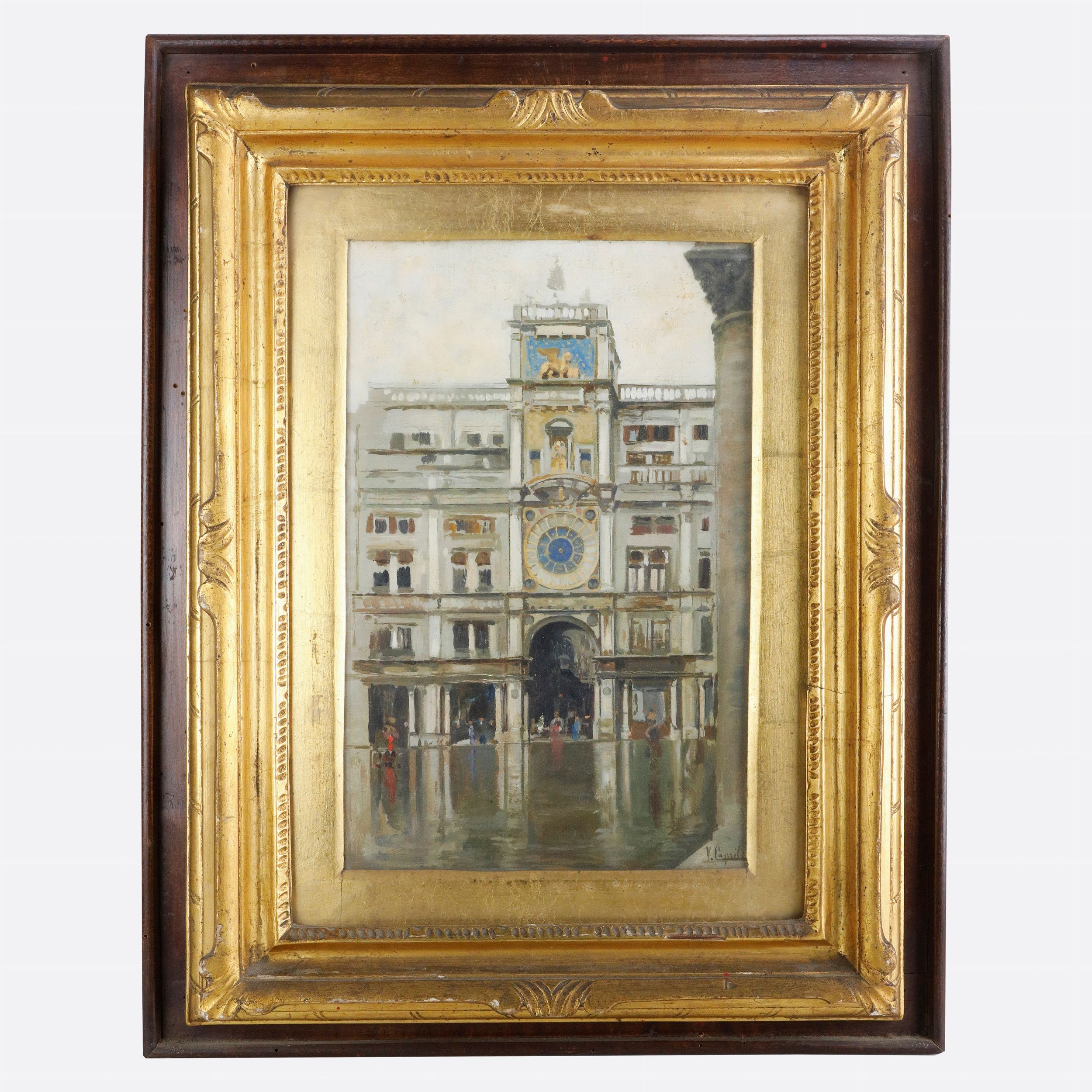 firmato al fronte in basso a destra in cornice dorata con al retro dicitura di appartenenza a collezione