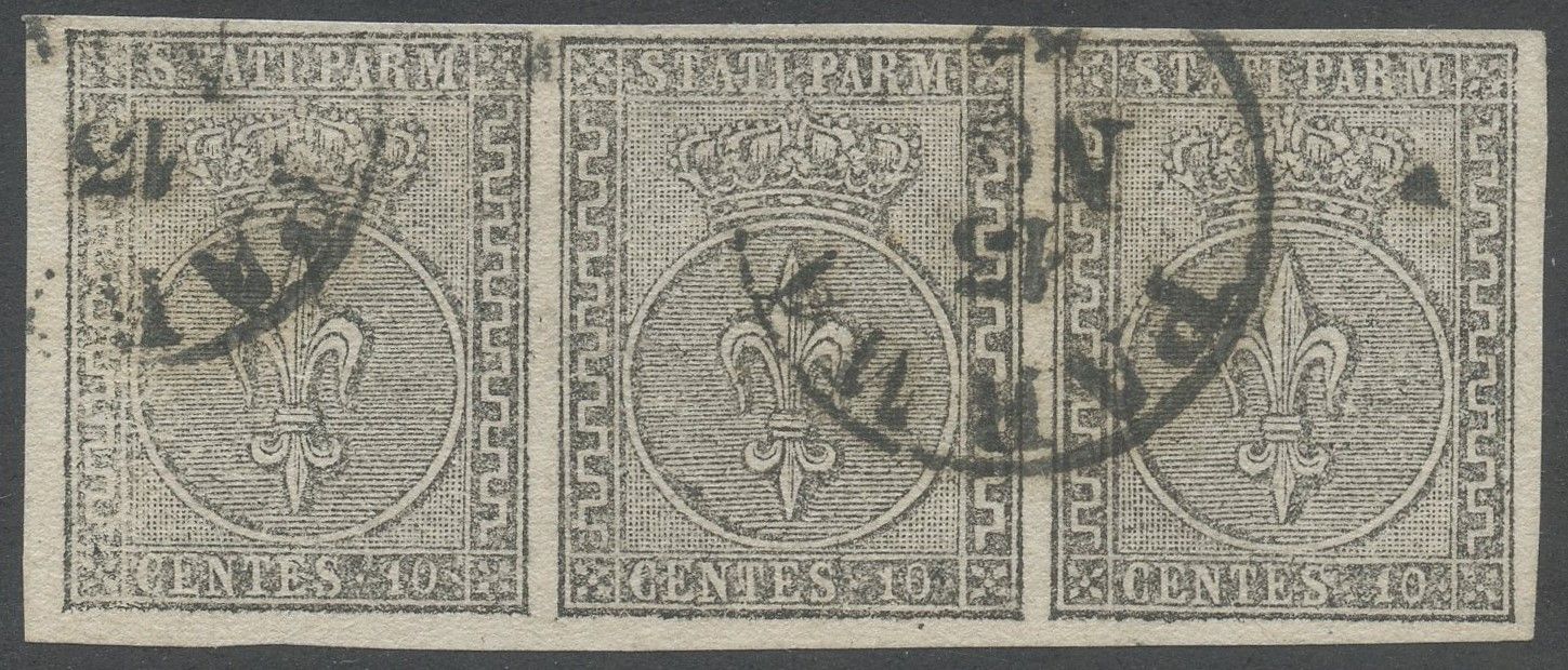 1852 - 10 cent. bianco n.2 in splendida striscia di tre. (LUX)