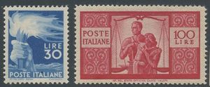 1945 - Democratica n. 563 e 565 nuovi con gomma integra e perfettamente centrati. Cert. Sollami.