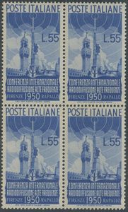 1950 - Radiodiffusione n.623/624 in quartina nuova con gomma integra.