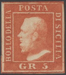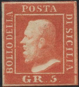 1859 - 5gr. N.11a Vermiglio Vivo di una tonalità particolarmente intensa. (A+) (Emilio Diena, Alberto Diena)