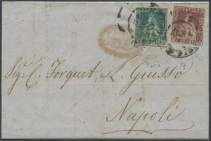 12.7.1856, lettera da Firenze per Napoli affrancata per 3cr. Tramite un 1cr.Cerminio Bruno su Grigio N.4e ed un [..]