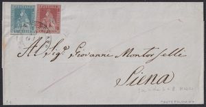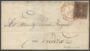 Toscana... 07.09.1860 - Busta spedita da Montalcino per Pienze affrancata tramite un 10 cent. bruno n. 19. Sull'affrancatura [..]