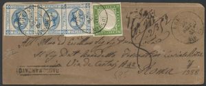 26.09.1863 - Busta raccomandata da Urbino per Roma affrancata per 50 centesimi tramite un 5 cent. verde n.13Ea [..]