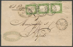 18.11.1857 - Lettera da Genova per Napoli viaggiata tramite Piroscafo ed affrancata per 15 centesimi tramite tre [..]