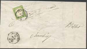 15.03.1858 - Lettera da Chambery per città affrancata tramite un 5 cent. verde giallo stampa difettosa n.13Ah. [..]