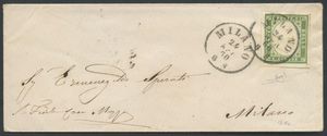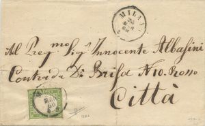 22.03.1860 - Lettera spedita da Milano per città affrancata in tariffa di primo porto per lettere spedite all'interno [..]