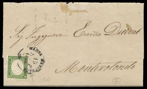 15.09.1863 - Lettera spedita da Massa Marittima per Monterotondo affrancata tramite un 5 cent. verde giallastro [..]