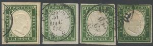 1862 - 5 cent. in quattro diverse tonalità. Qualità mista.
