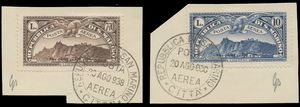 1931 - Veduta n. 1/10 serie completa usata e conservata su ritagli di lettera. Cert. Sollami.