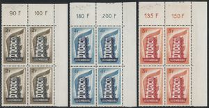 1956, N.514/516 in splendide quartine angolo di foglio nuove. Certificato Raybaudi.