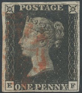 1840 - 1 penny nero ''Penny Black'' n.1 usato. Attestato Bolaffi.