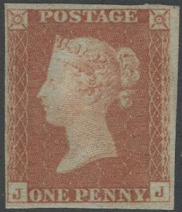 1841 - 1 penny bruno rosso su carta azzurrata n.3 nuovo con gomma integra MNH. Cert. Bolaffi
