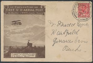 1911 - ''First U.K AERIAL POST''. Cert. Bolaffi