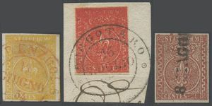 1853 - la seconda emissione usata n.6/7 tutti di ottima qualità, il n.15 conservato su frammento. (A+) (Emilio [..]