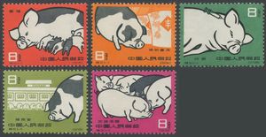 1960 - Serie ''Maiali'' n.1304/1308 nuovi con gomma integra. MNH.
