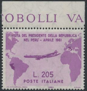 1961, Gronchi Rosa 205L n. 921. Splendido esemplare con bordo di foglio in alto, nuovo con gomma integra. [..]