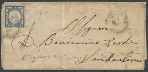 1861 - Lettera da Chieti per S. Antimo affrancata tramite un 2 gr. azzurro n.20. Si tratta di uno splendido esempio [..]
