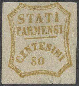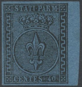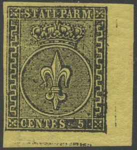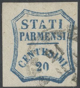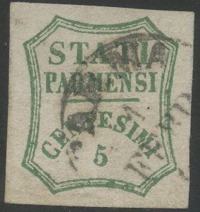 1859 - 5 cent. Verde Azzurro n.12 usato a Parma il 1 Febbraio 1860, in periodo di tolleranza. Straordinaria qualità. [..]