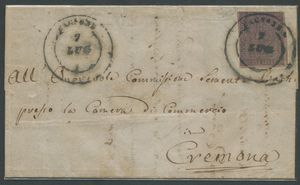 5.7.1859 - lettera da Bagnone per Cremona in periodo di II° Governo provvisorio, affrancata tramite un 25c. Violetto [..]