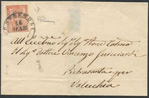 14.03.1854 - Lettera da Pontermoli per Pietrasanta affrancata tramite un 15 cent. vermiglio n.7. (A+) (Vaccari, [..]