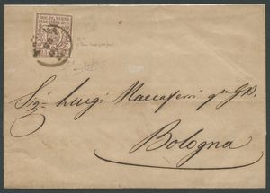 28.12.1858 - lettera da Parma per Bologna affrancata tramite un 25c. bruno lilla N.10. interessante difetto di [..]