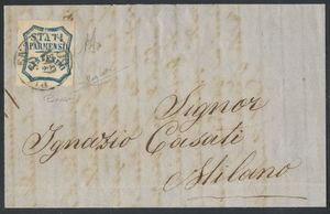 30.01.1859 - lettera da Piacenza per Milano affrancata tramite un 20 cent. azzurro con la scritta ''STATI'' attraversata [..]