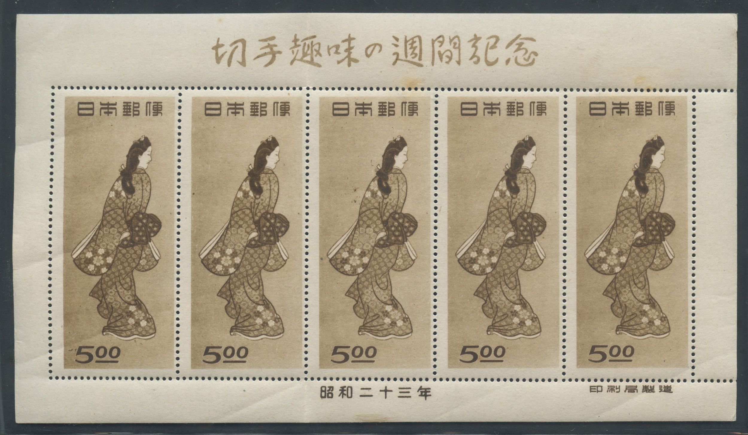 1948 - N.403 minifoglio di cinque esemplari. Qualche punto di ingiallimento. Qualità mediocre.