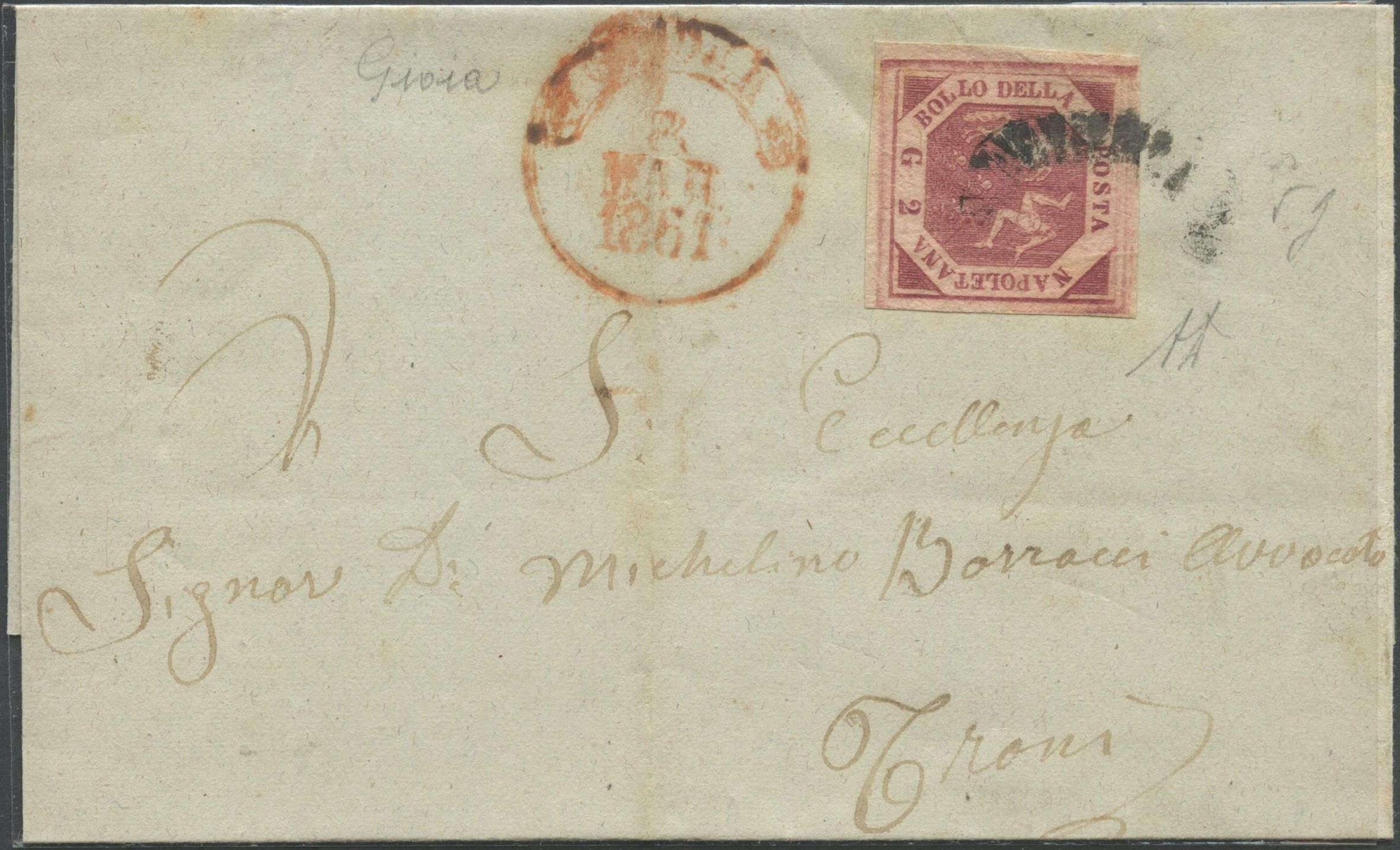 03.03.1861 - Lettera da Goja per Trani affrancata con un 2gr. N.7f Carminio Cupo. Sull'affrancatura lo svolazzo tipo 1 di GOJA (13pt.). (A+) (A. Diena