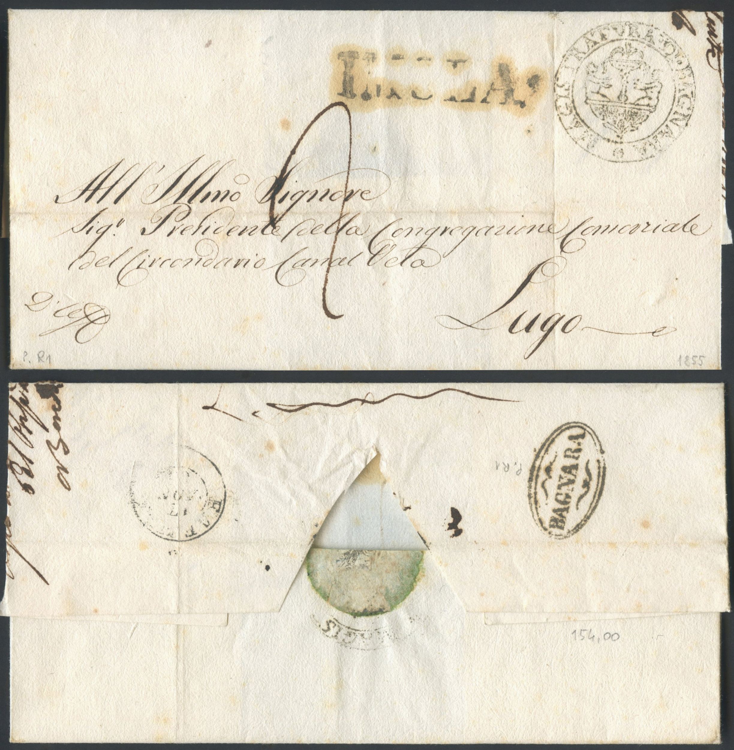 1855 - Lettera spedita da BAGNARA (pt.R1) per Lugo.