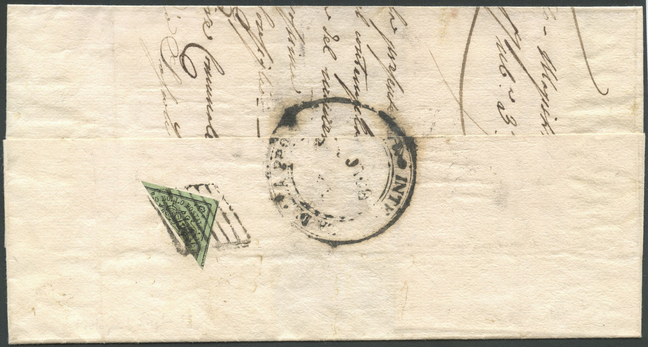 06.07.1859 - Francobollo pontificio da 2 baj. frazionato per 1/2 utilizzato durante il governo provvisorio delle Romagne.